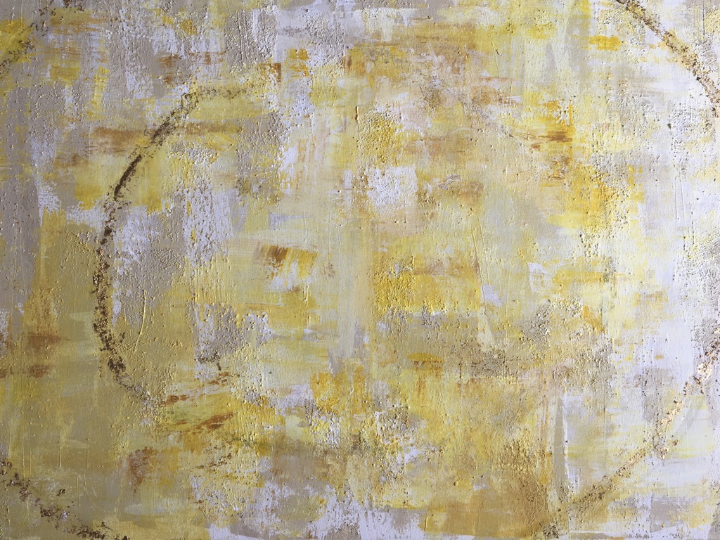 100 % Baumwolle 280g/m2 Acryl/Strukturpaste/ Art Blattmetall gold/ Spachteltechnik Preis: 450,-