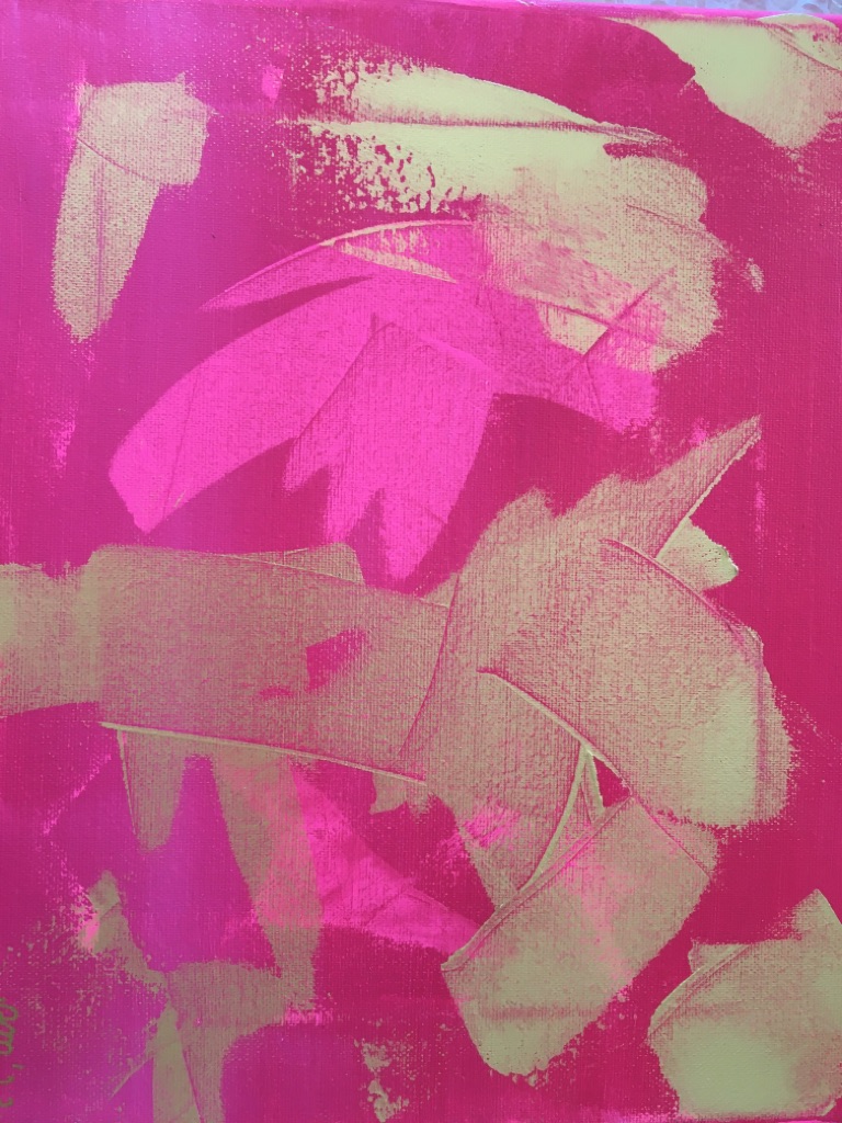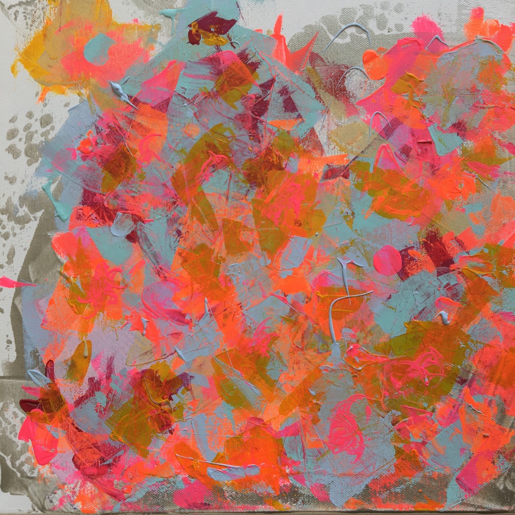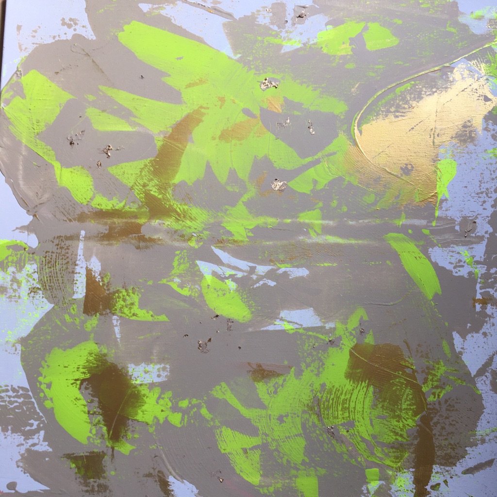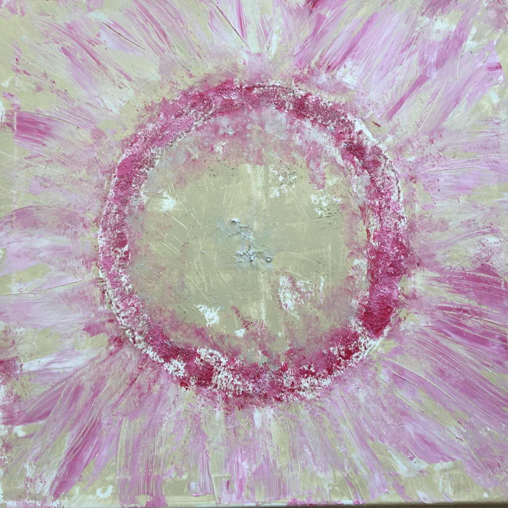 Format: 50×50 Kartonleinwand Acryl/Spachteltechnik/ Gold