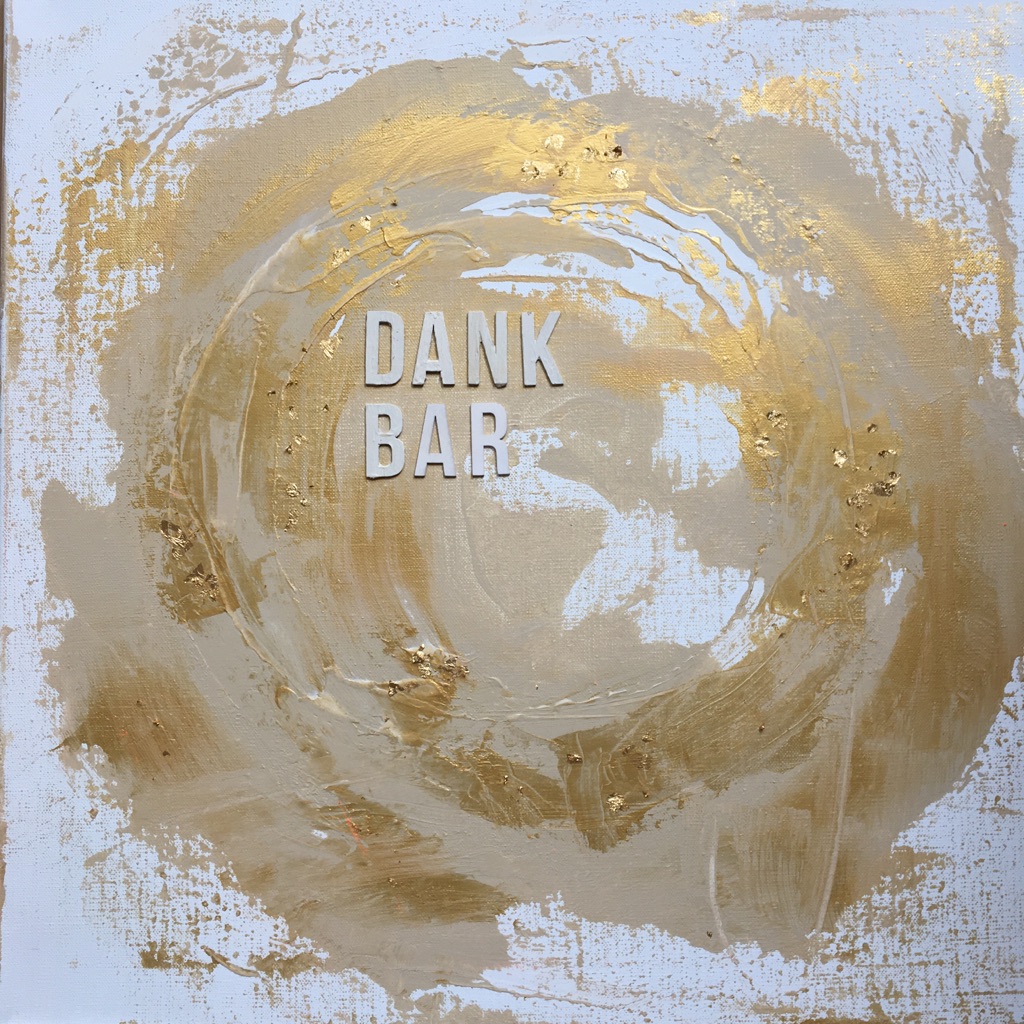 Format: 50×50 Bespannter Keilrahmen 1,8 cm Tiefe 100 % Baumwolle 289g/m2 Acryl/ Holzbuchstaben/ Glitzergold/ Spachteltechnik